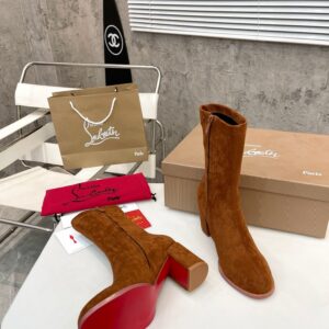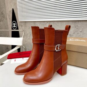 Christian Louboutin CL Chelsea Ankle Boots 70MM in Brown Leather