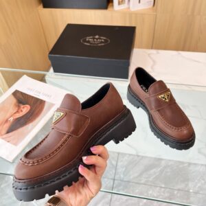 Prada Women’s Double Chocolate Loafers in Cognac Leather