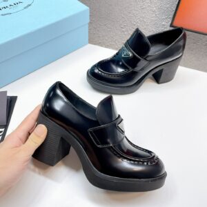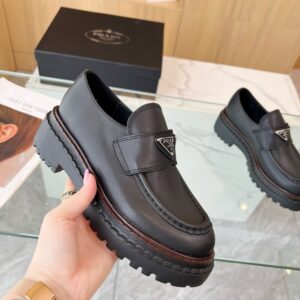 Prada Women’s Double Chocolate Loafers in Black Leather