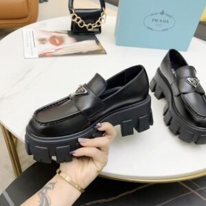Prada Women’s Monolith Loafers In Black Brushed Leather