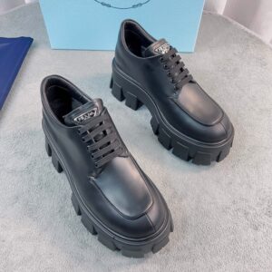 Prada Monolith Lace-up Shoes in Black Brushed Leather