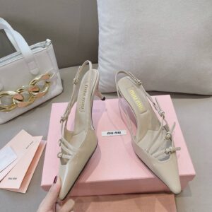 Miu Miu Slingback Pumps 55mm in Sand Patent Leather with Buckles