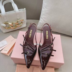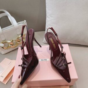 Miu Miu Slingback Pumps 55mm in Bordeaux Patent Leather with Buckles