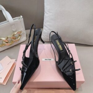 Miu Miu Slingback Pumps 55mm in Black Patent Leather with Buckles