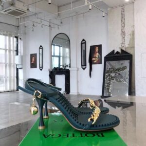 Bottega Veneta Dot Sandals 100mm In Kiwi Lambskin