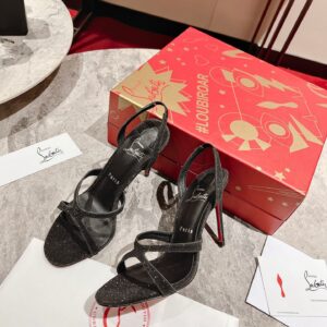 Christian Louboutin Emilie 100MM Sandals In Black Glittered Leather