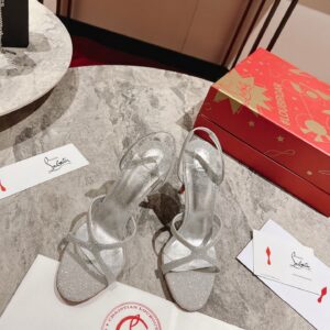 Christian Louboutin Emilie 100MM Sandals In Silver Glittered Leather