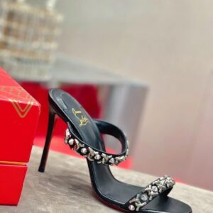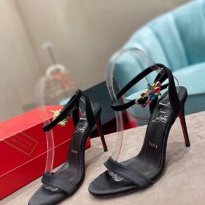 Christian Louboutin Emilie Strass 100MM Sandals In Black Veau Velours
