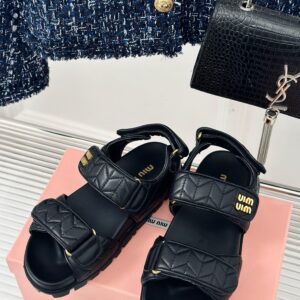 Miu Miu Women’s Sandals in Black Matelasse Nappa Leather