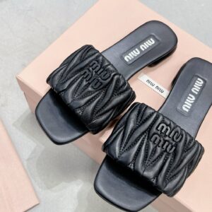 Miu Miu Women’s Slides in Black Matelasse Nappa Leather