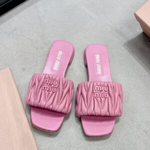 Miu Miu Women’s Slides in Pink Matelasse Nappa Leather