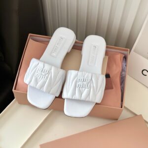 Miu Miu Women’s Slides in White Matelasse Nappa Leather