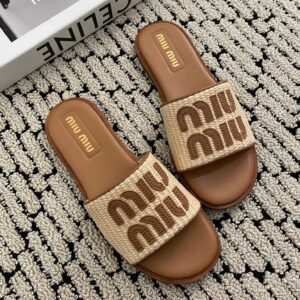 Miu Miu Women’s Slides in Beige Raffia-effect Woven Fabric
