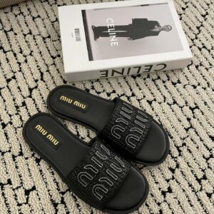 Miu Miu Women’s Slides in Black Raffia-effect Woven Fabric