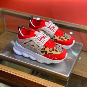 Versace Women’s Red Chain Reaction Sneakers With Leopard Print