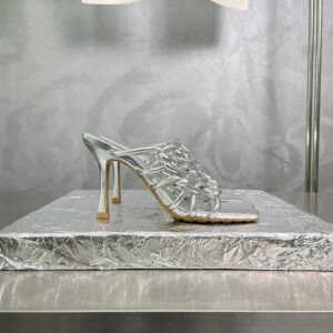 Bottega Veneta Stretch Twist Sandals In Silver Metallic Lambskin