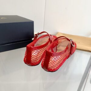Alaïa gives the humble ballet flats a modern update. This pair has been crafted from mesh reinforced with glossy patent-leather straps. They have classic round toes.