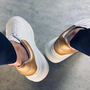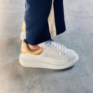 Offering elevation in a cool, contemporary way, Alexander McQueen’s Show trainers are set on by exaggerated soles – showcasing a unique take on athleisure. Expertly crafted in the smoothest leather, this low-top style is punctuated with contrasting gold panels to the heel and subtly stamped with the label’s iconography.