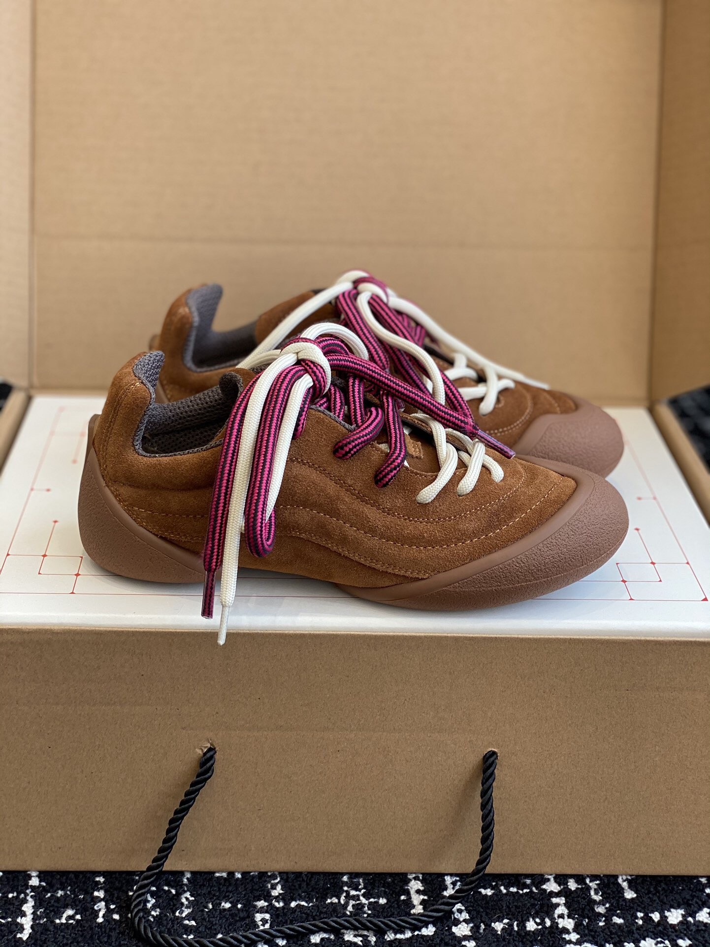 Alexander McQueen has a flair for creating sought-after sneakers. This Flexion pair is made from suede leather that’s quilted in dream-like waves. They fasten with doubled-up laces and have split soles inspired by anatomy – a constant reference point for the house.