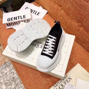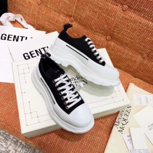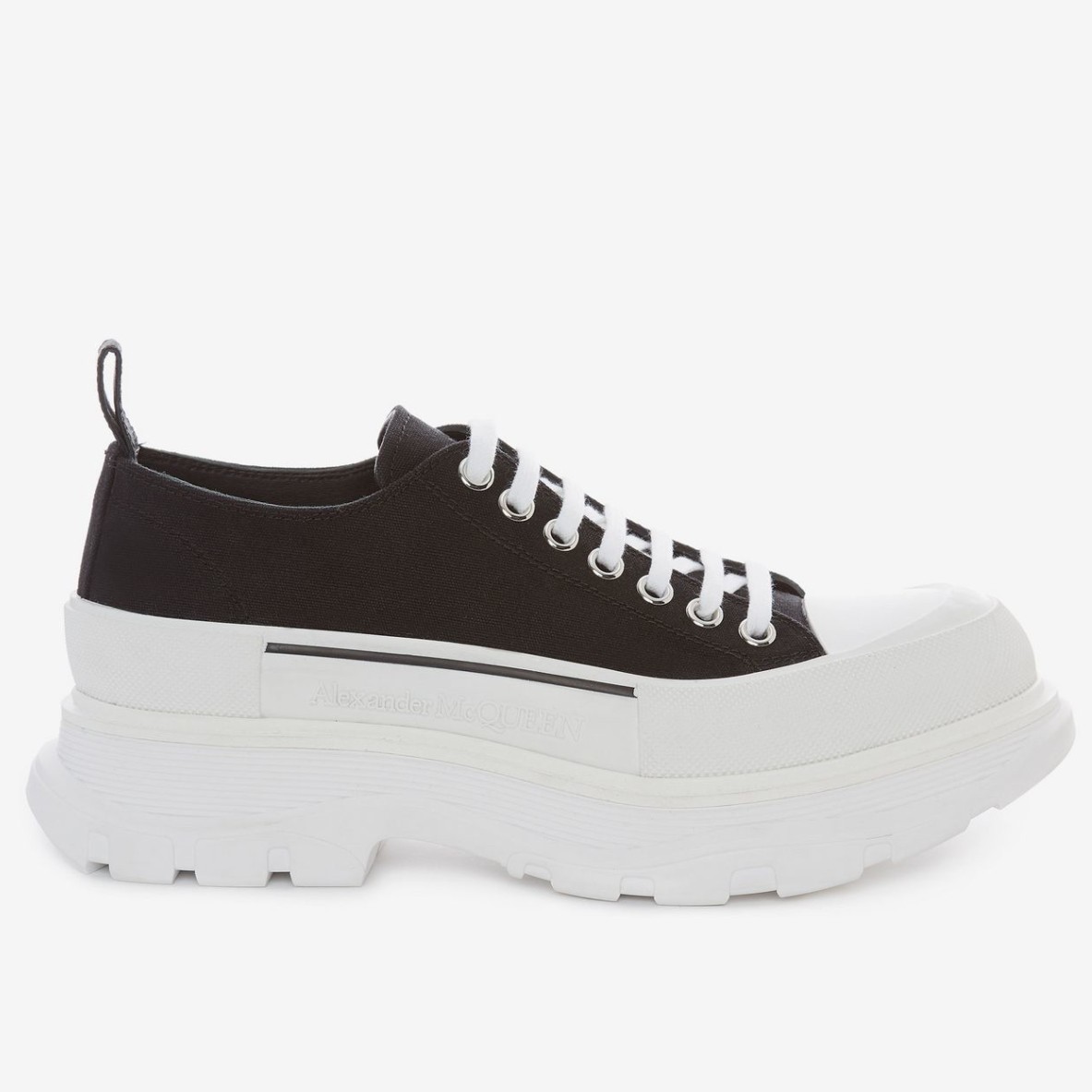 Following the Tread boots, Alexander McQueen presents the Tread Slick sneakers for SS20. Blurring the lines between shoes and trainers, the lace-up, canvas upper gives way to an outsized and elevated rubber sole. Wear yours with cropped hemlines to keep them in focus.