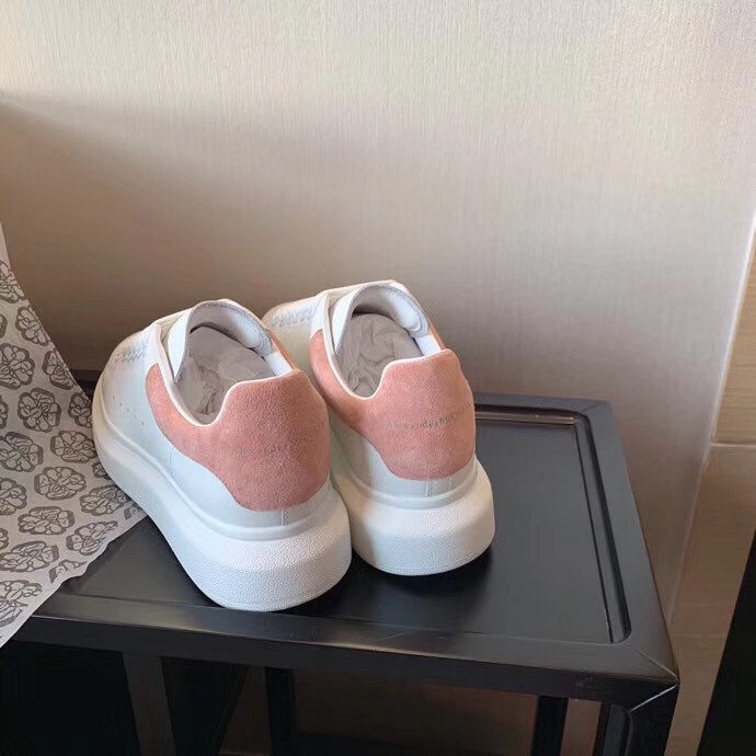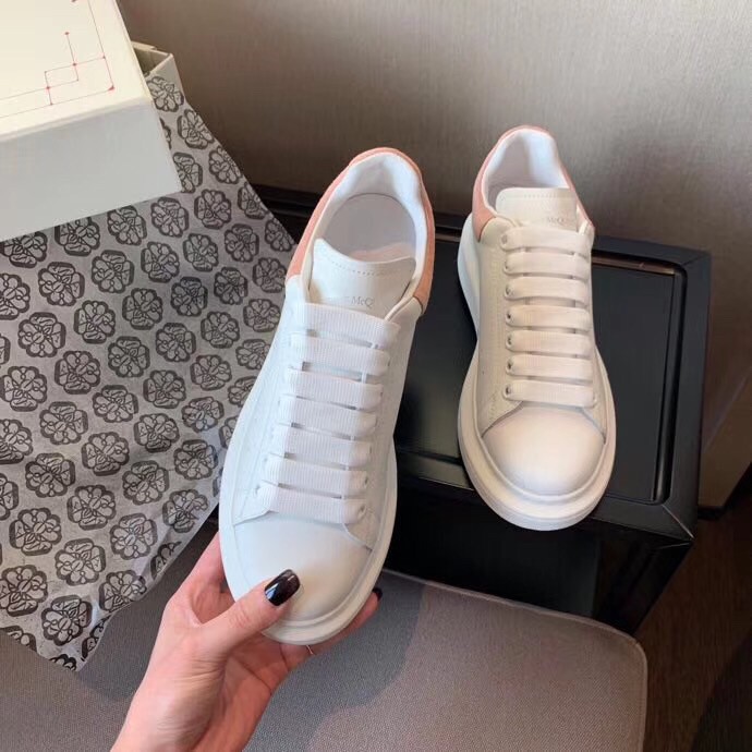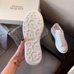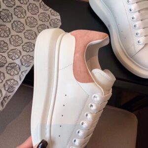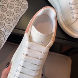 Alexander McQueen updates the sneakerhead trend with a monochrome pink and white rendition. This style is made from a flatform white sole and upper, contrasting against a pink suede heel counter and signature to the tongue. Pair yours with dresses and pants all season long.