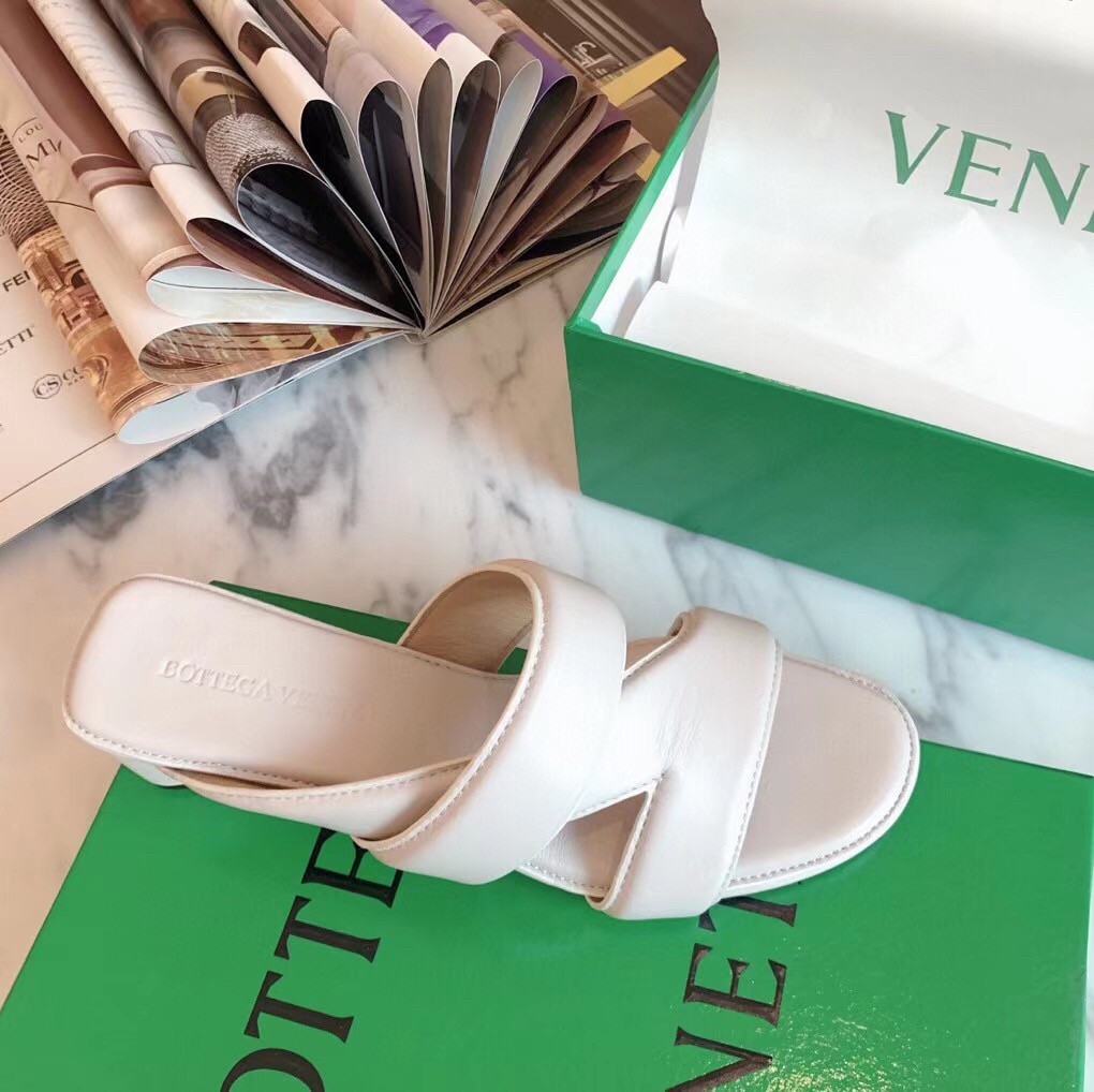 Bottega Veneta Band Sandals 55MM In White Calfskin