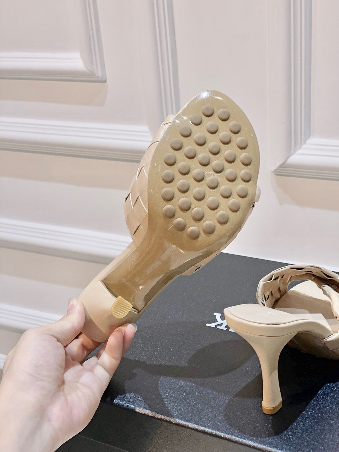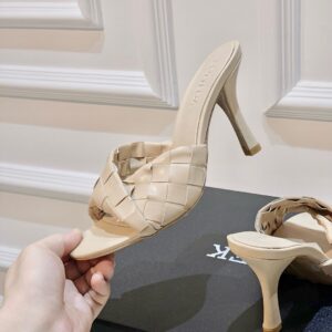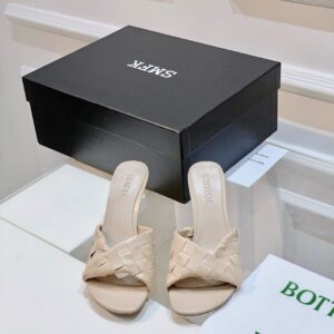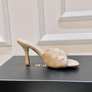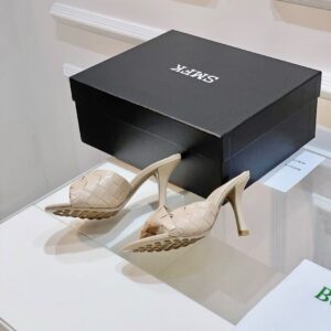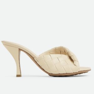 Bottega Veneta Blink Mules 80mm in Beige Intrecciato Lambskin