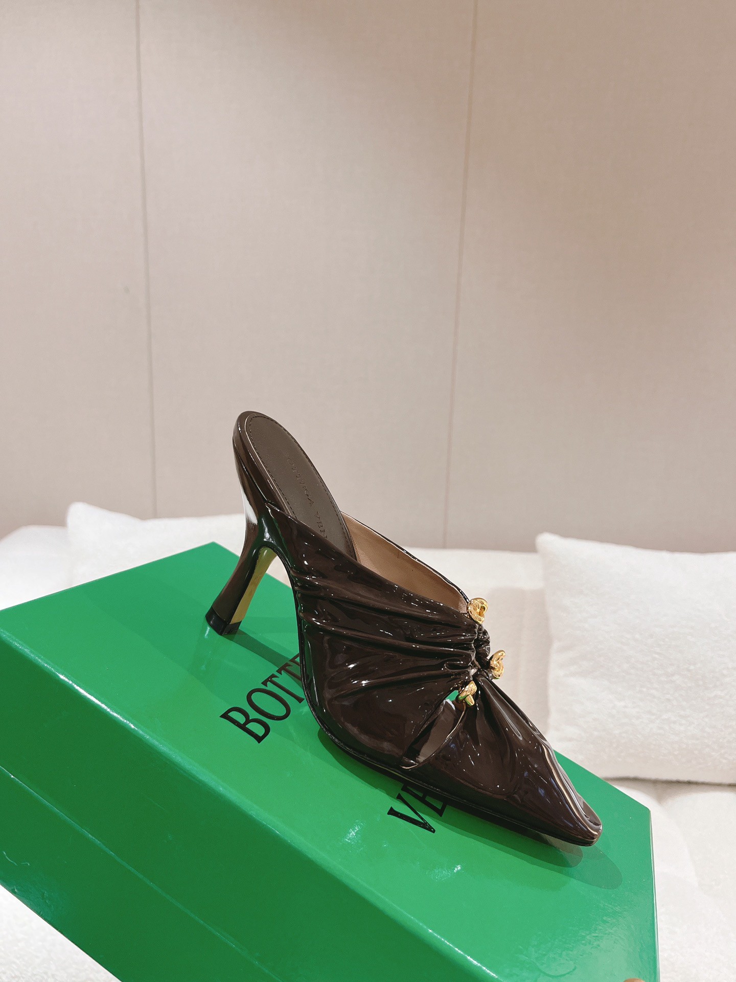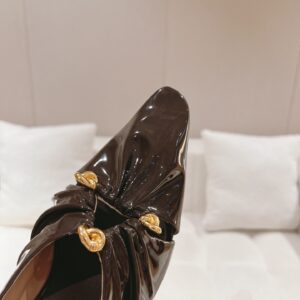 Bottega Veneta’s Bunnie mules traverse past and present, with vintage-inspired details compiled with a timeless approach. The gathered effect highlights the supple quality of the Italian House’s fine patent leather, while a trio of triangle shapes are effortlessly in step with the cut-outs found across international runways.
