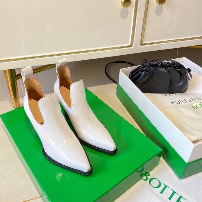 Bottega Veneta BV Lean Ankle Boots In White Calfskin