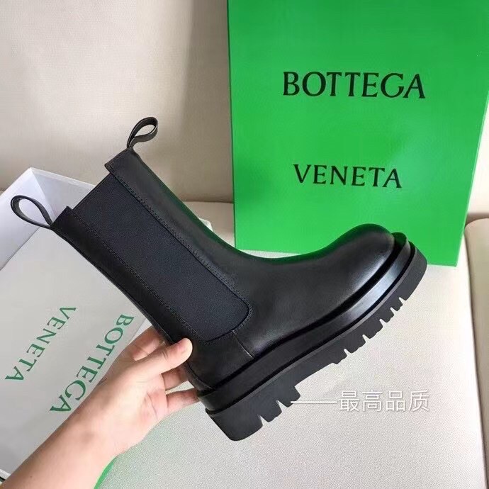 Bottega Veneta BV Lug Chelsea Boots In Black Calfskin
