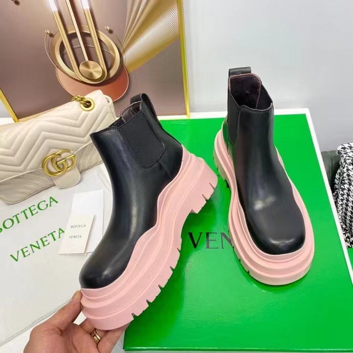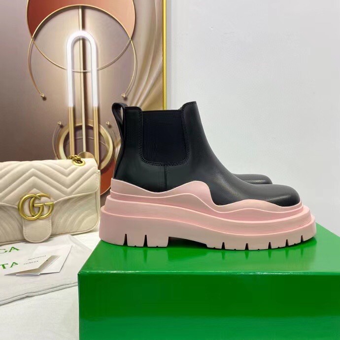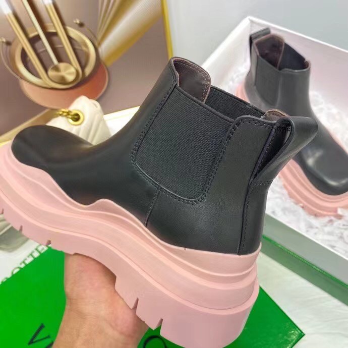 Bottega Veneta BV Tire Ankle Boots with Pink Outsole