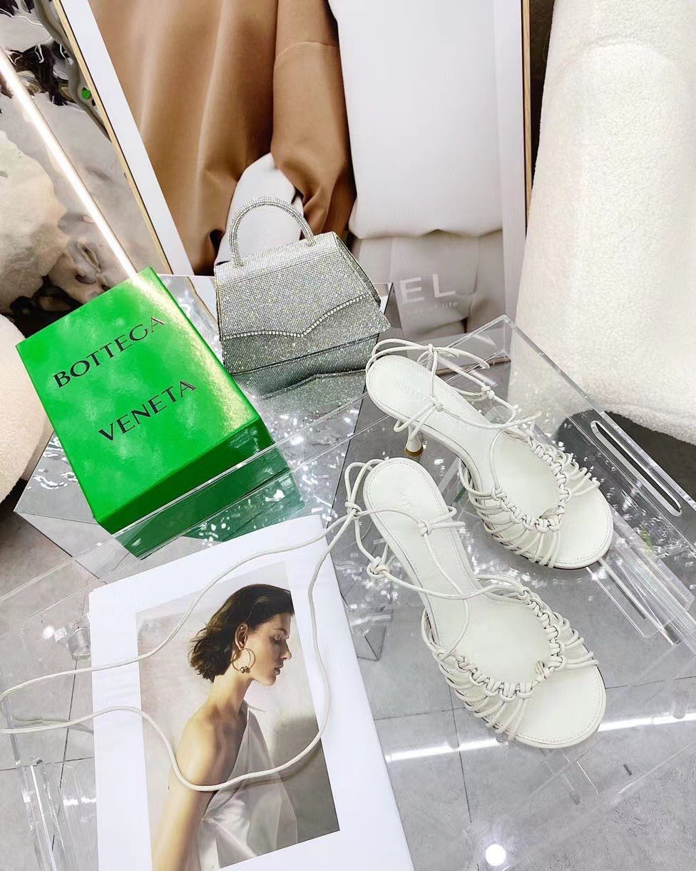Taking the concept of strappy sandals to another level, the Dot sandals from Bottega Veneta are our favorite shoes for summer. Made from smooth lamb leather, they rise to a 100mm heel height.