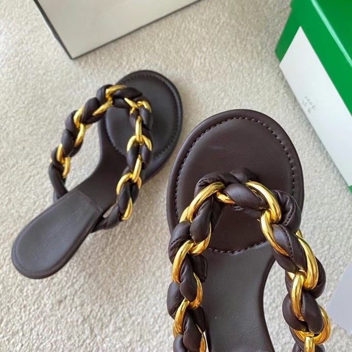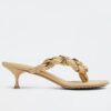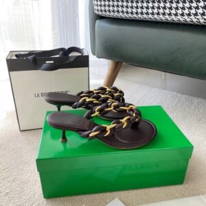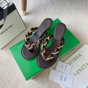 With the Dot thong sandals, Bottega Veneta posits top-to-toe chainlinks as a wearable option – style them alongside the house’s now-iconic jewelry and bags bearing the same golden hardware. Made from the softest lambskin leather, this kitten-heeled pair is completed with round toes and cushioned soles for comfort.