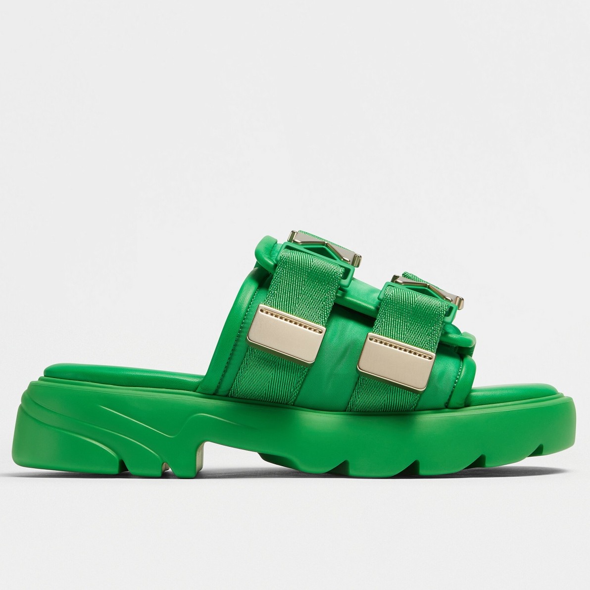 Bottega Veneta’s utilitarian-inspired ‘Flash’ slides are topped with grosgrain buckles that have gold-tone hardware designed in the shape of the label’s signature ‘V’. Set on chunky platform soles, they’ve been made from comfortable neoprene trimmed with leather. Wear yours with denim or dresses.