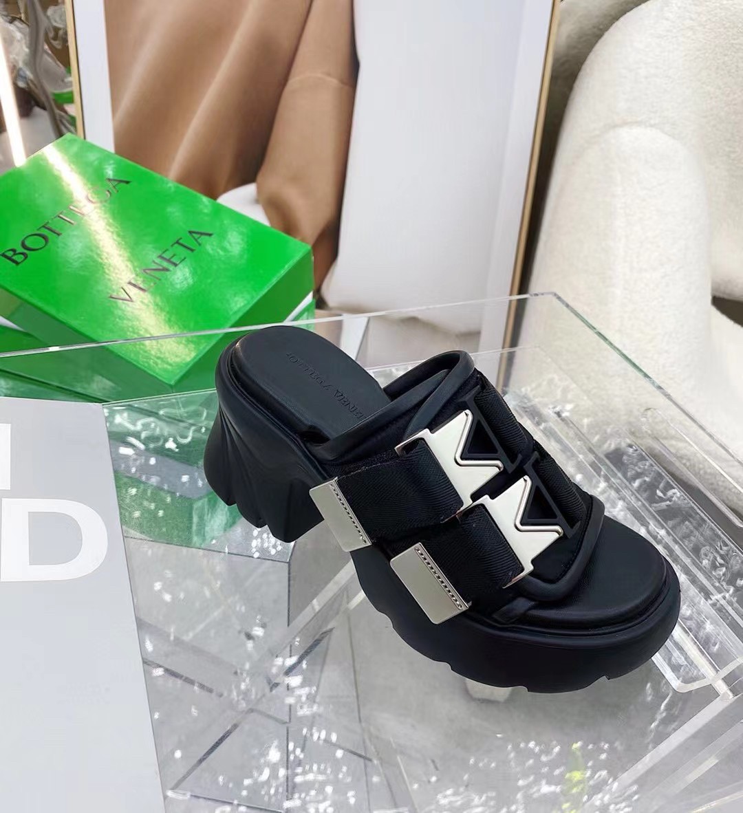 Taking utilitarian aesthetics to a new extreme, Bottega Veneta presents these Flash sandals, which are set upon a sculpted block heel to lend your downtown ensembles a compelling finish. Further characterised by two buckle straps, note the V-shaped buckles inspired by the label’s initials and love of geometry. this pair exudes a sense of subversiveness.
