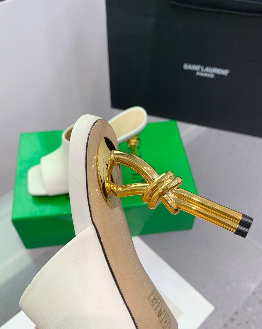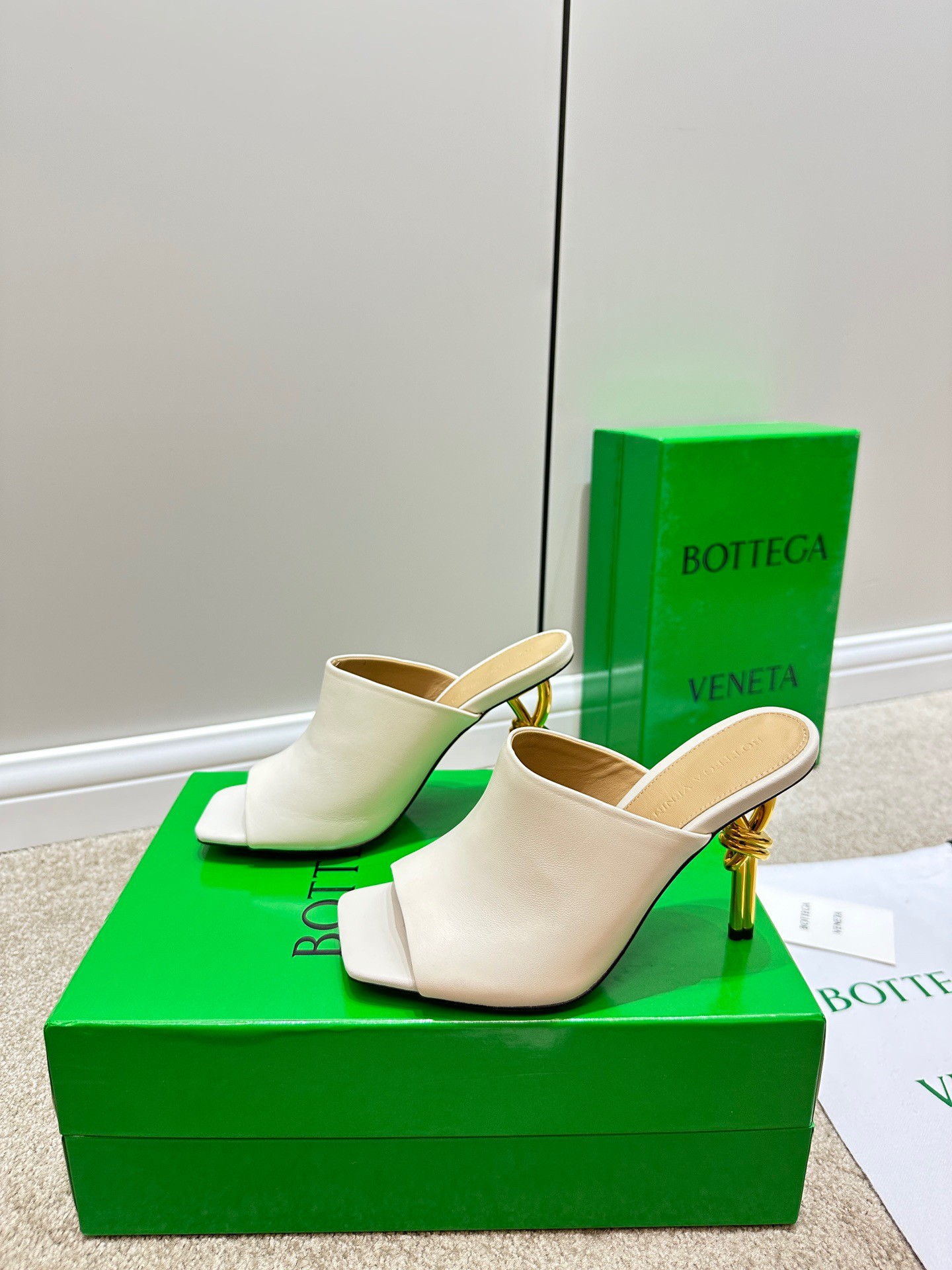 Bottega Veneta Knot Mules 90mm In White Lambskin