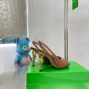 Devotees to Bottega Veneta will have no trouble recognising the eye-catching motif that makes up the heels of these slingback sandals. Represented in gold-tone hardware, the knot was first witnessed in the label’s archives in 1978 and reimagined in 2001 as a clasp on a range of covetable clutch bags.