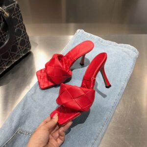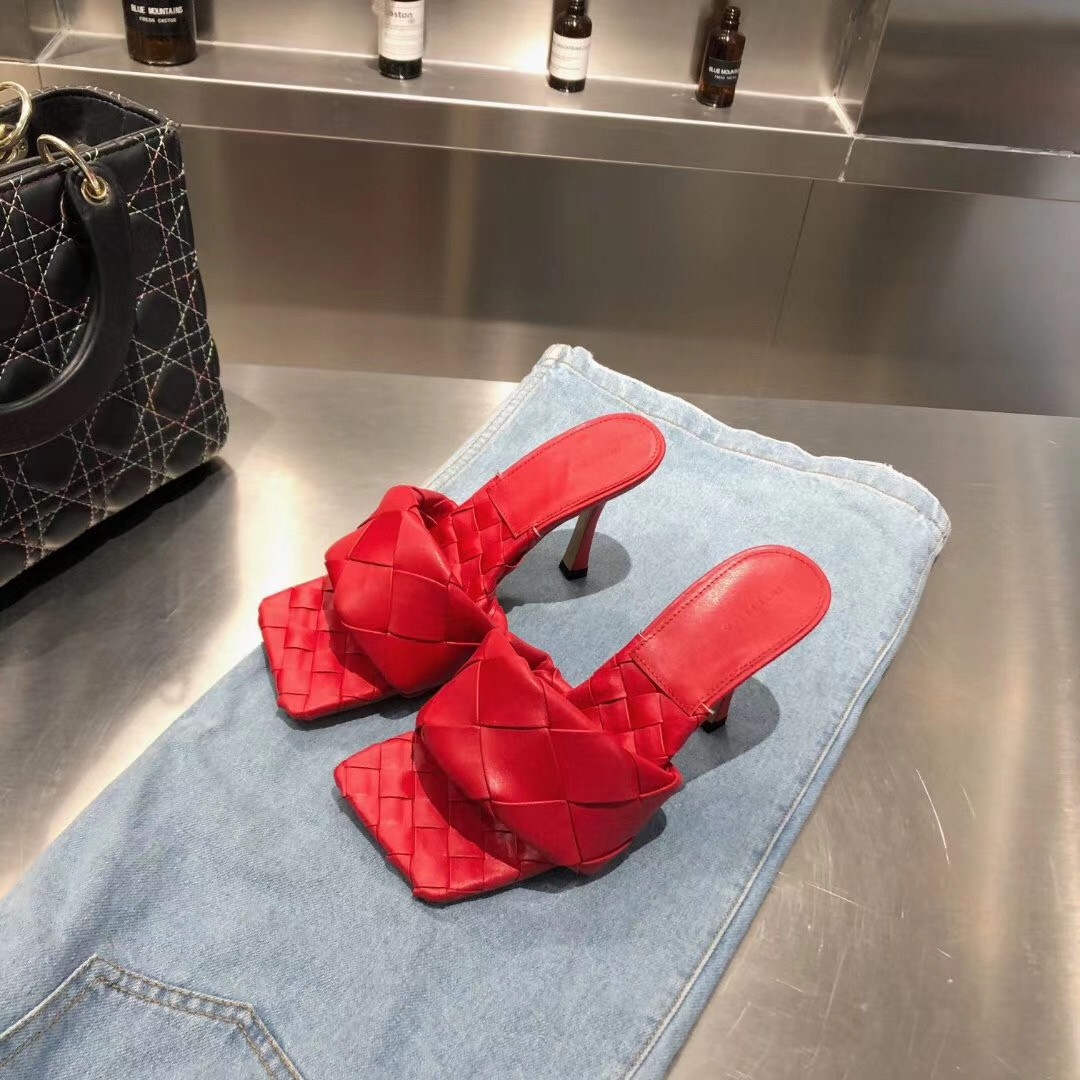 – Intrecciato leather mules with a squared sole