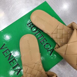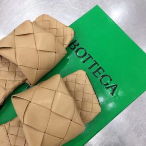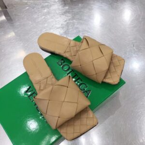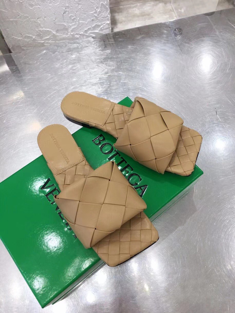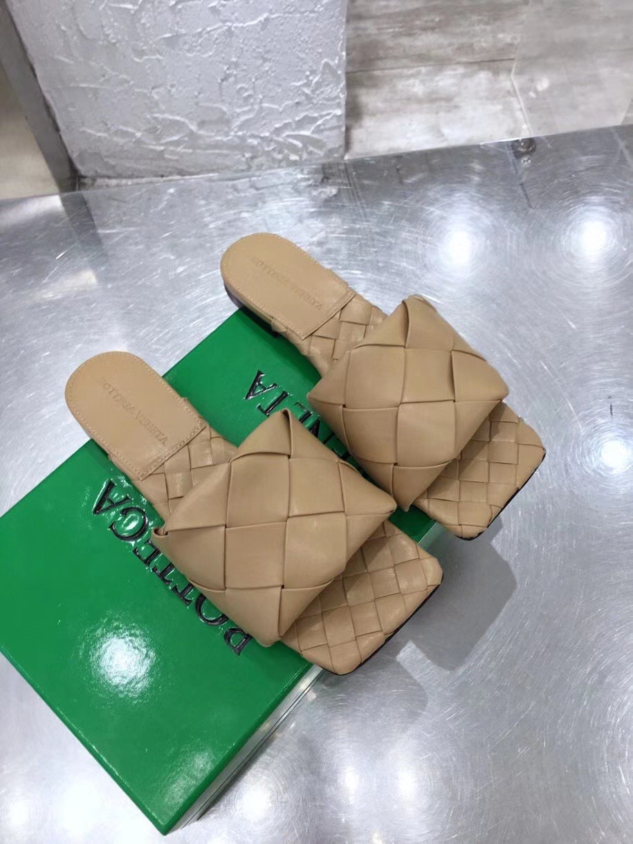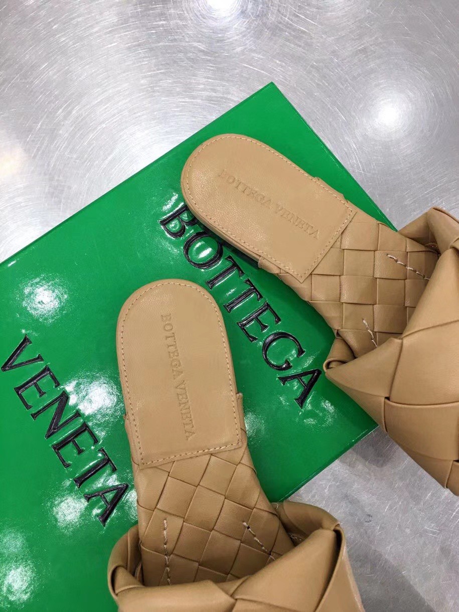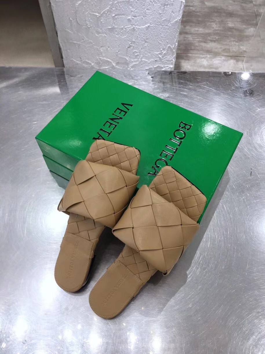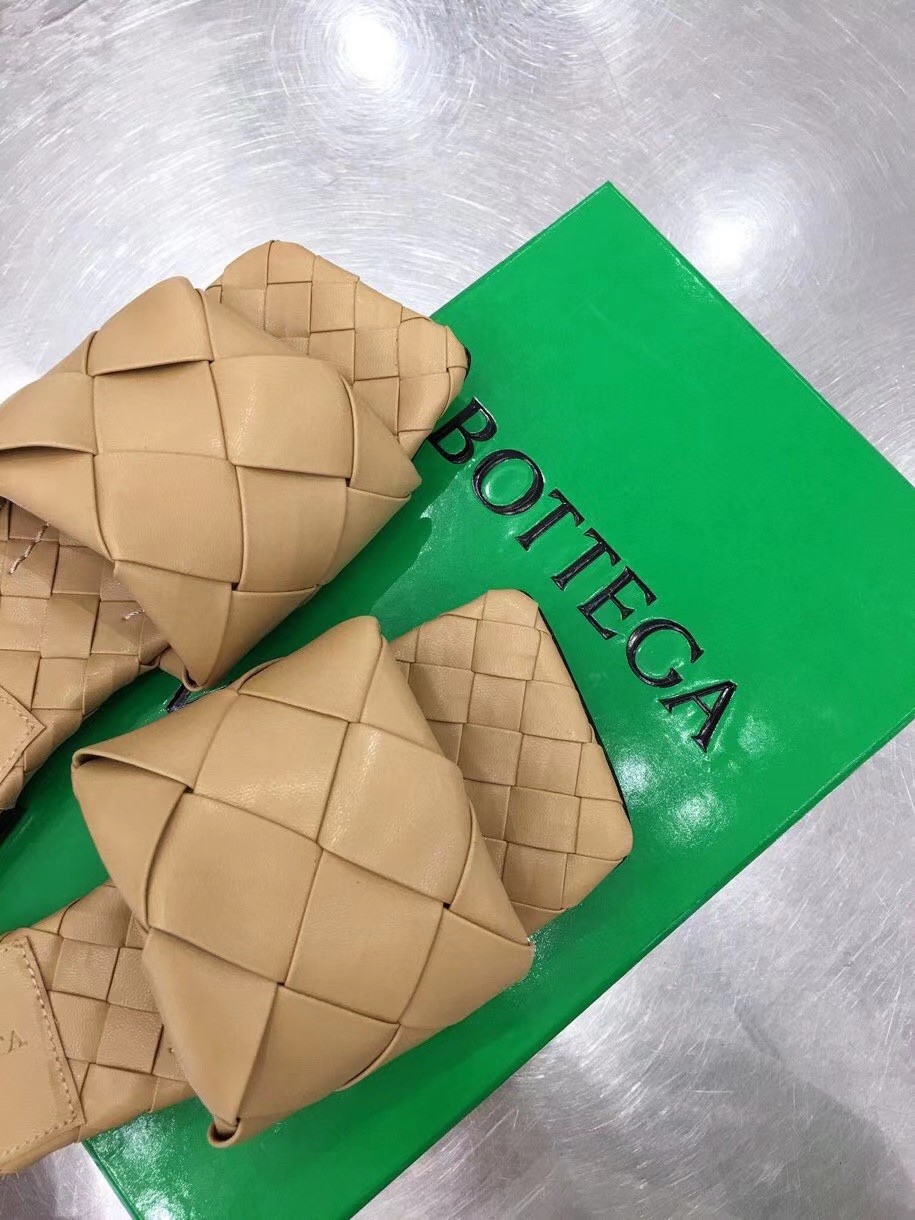 Bottega Veneta Lido Slides In Beige Intreccio Lambskin