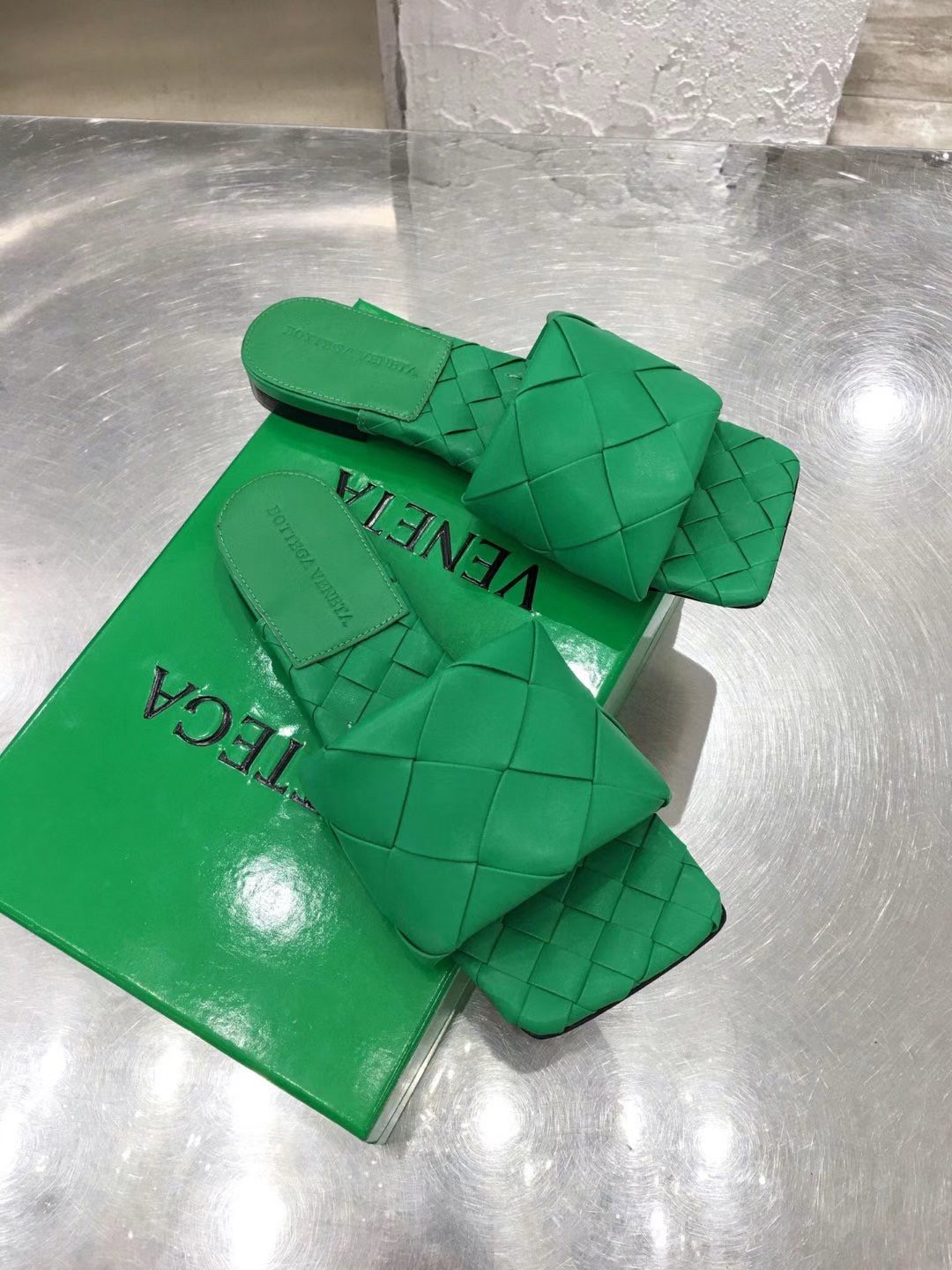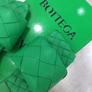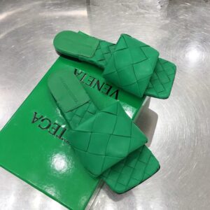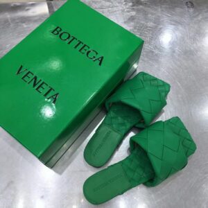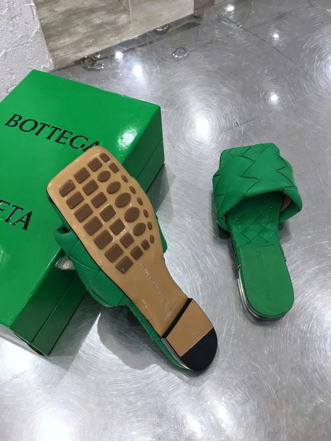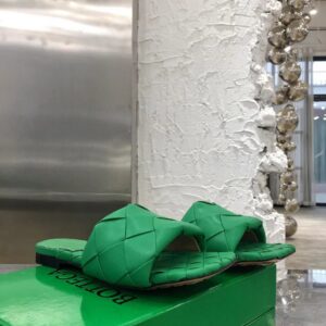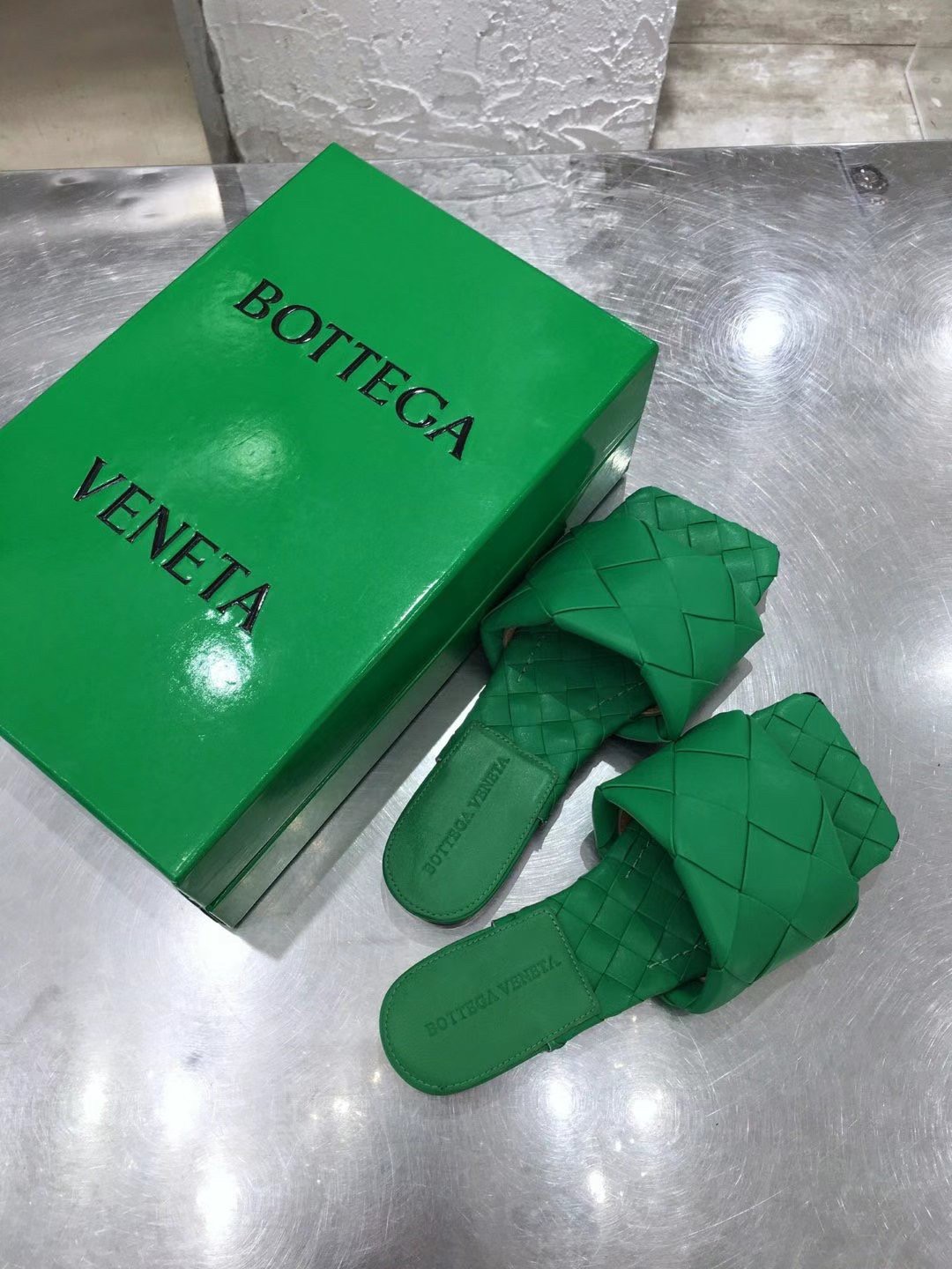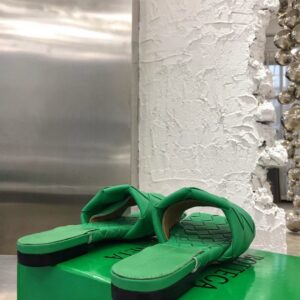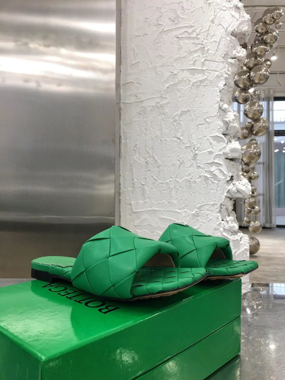 Bottega Veneta Lido Slides In Green Intreccio Lambskin