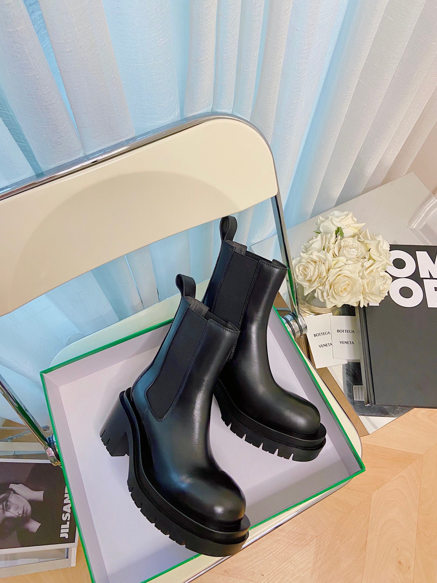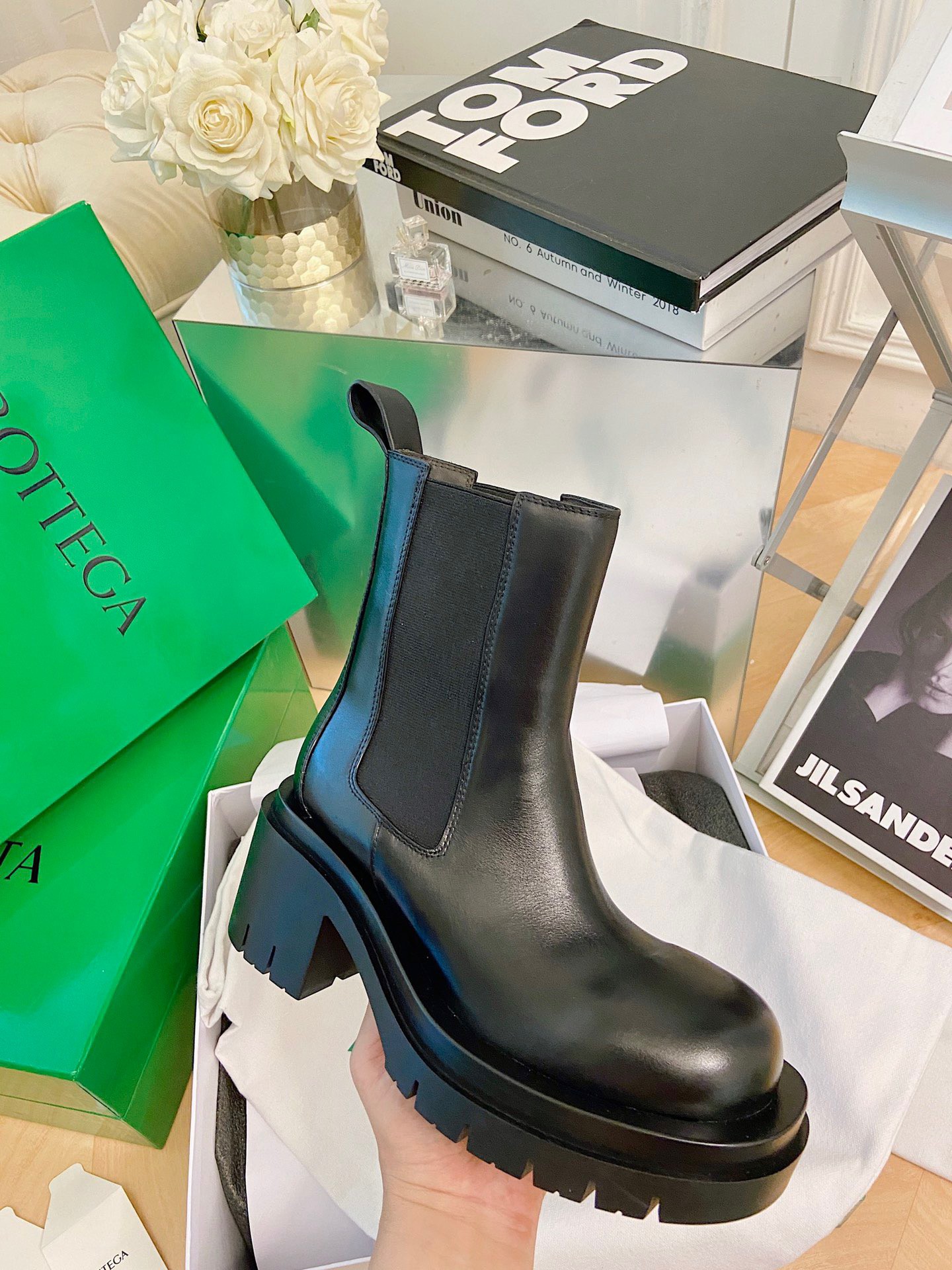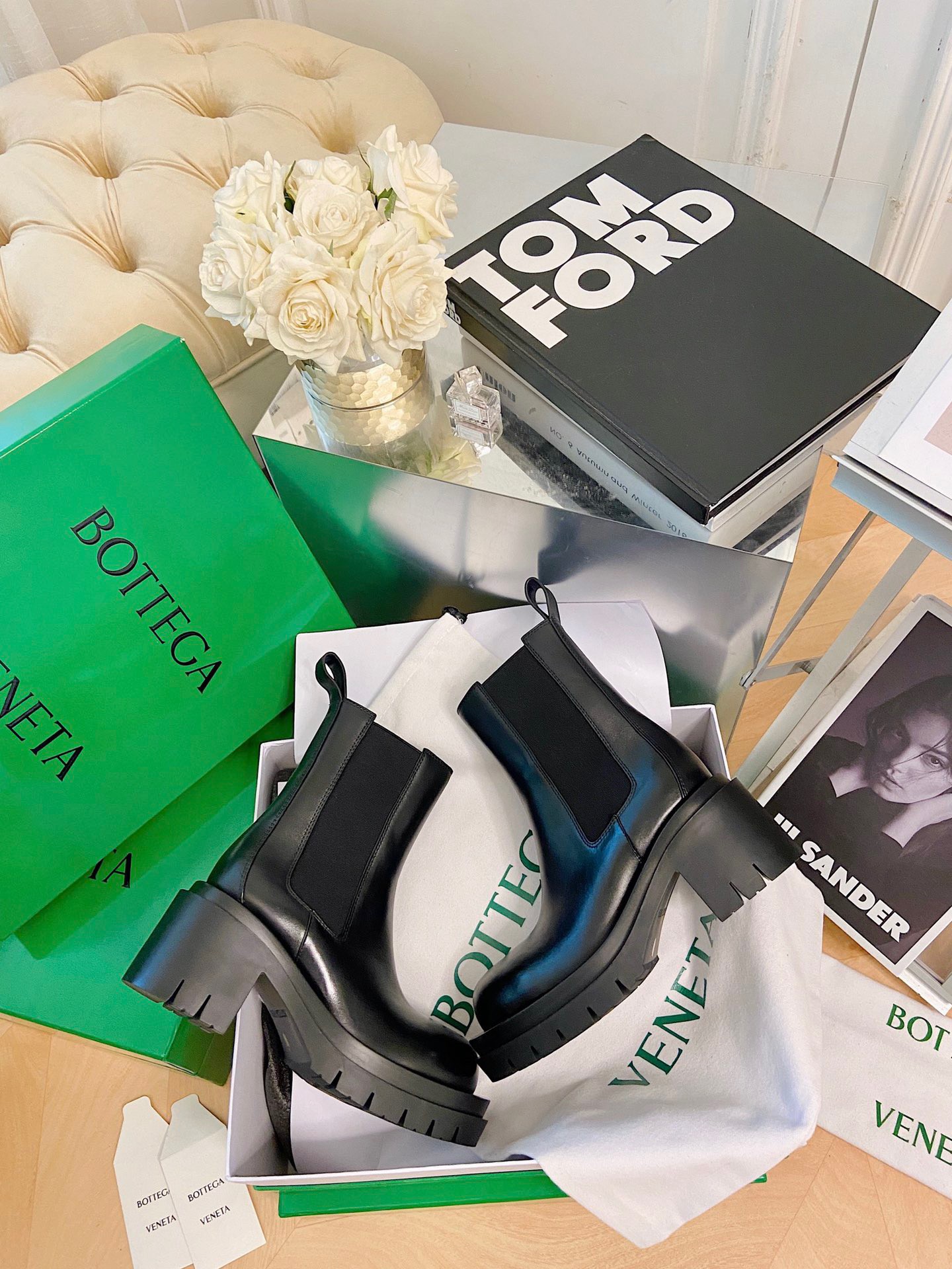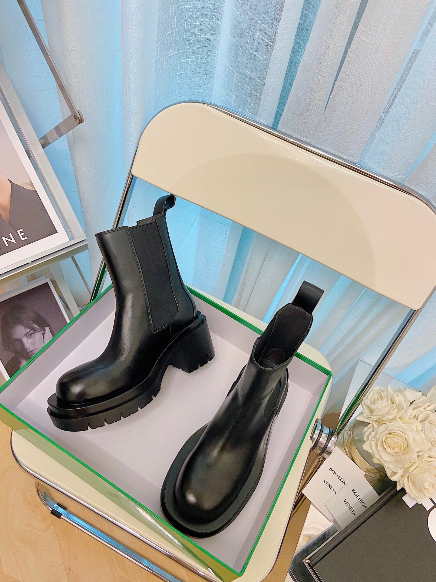 Bottega Veneta signs a daring creation. Building on the now-signature stompy bootthis military-inspired pair is made from smooth calfskin leather set atop on-trend chunky heeled rubber lug soles. Comfort and style come to the fore.