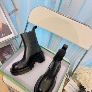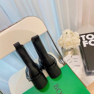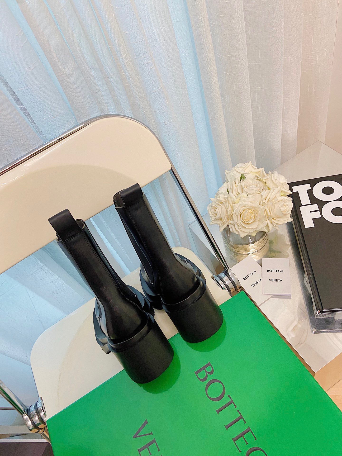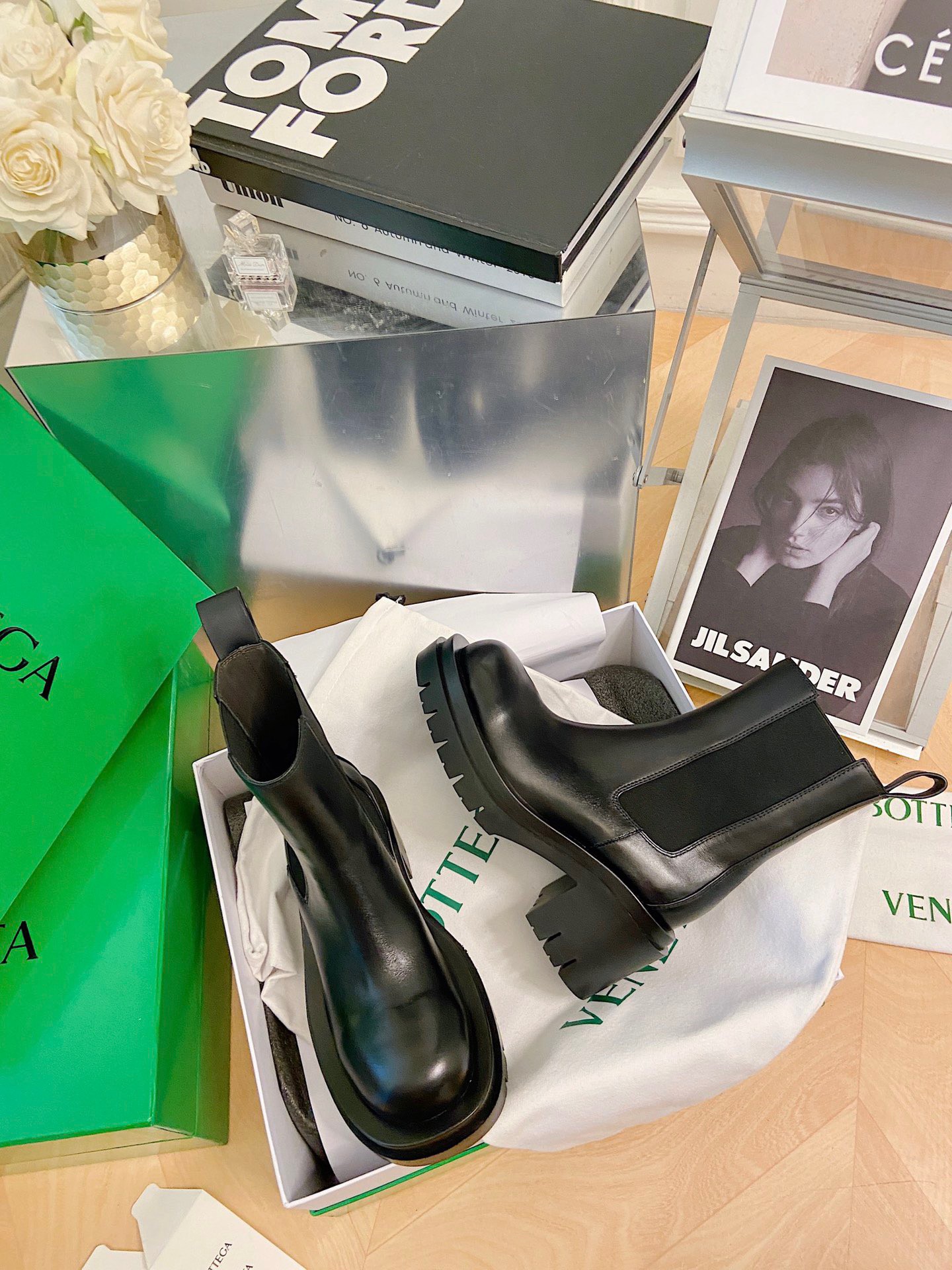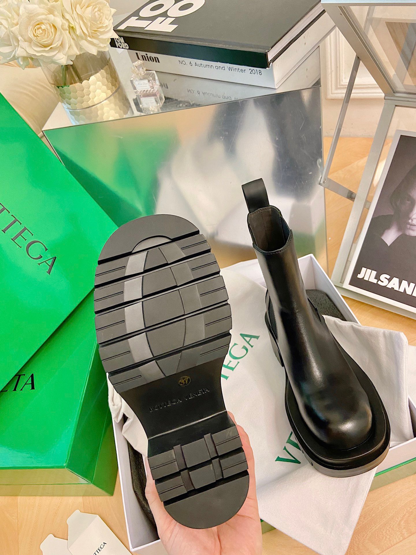 Bottega Veneta signs a daring creation. Building on the now-signature stompy bootthis military-inspired pair is made from smooth calfskin leather set atop on-trend chunky heeled rubber lug soles. Comfort and style come to the fore.