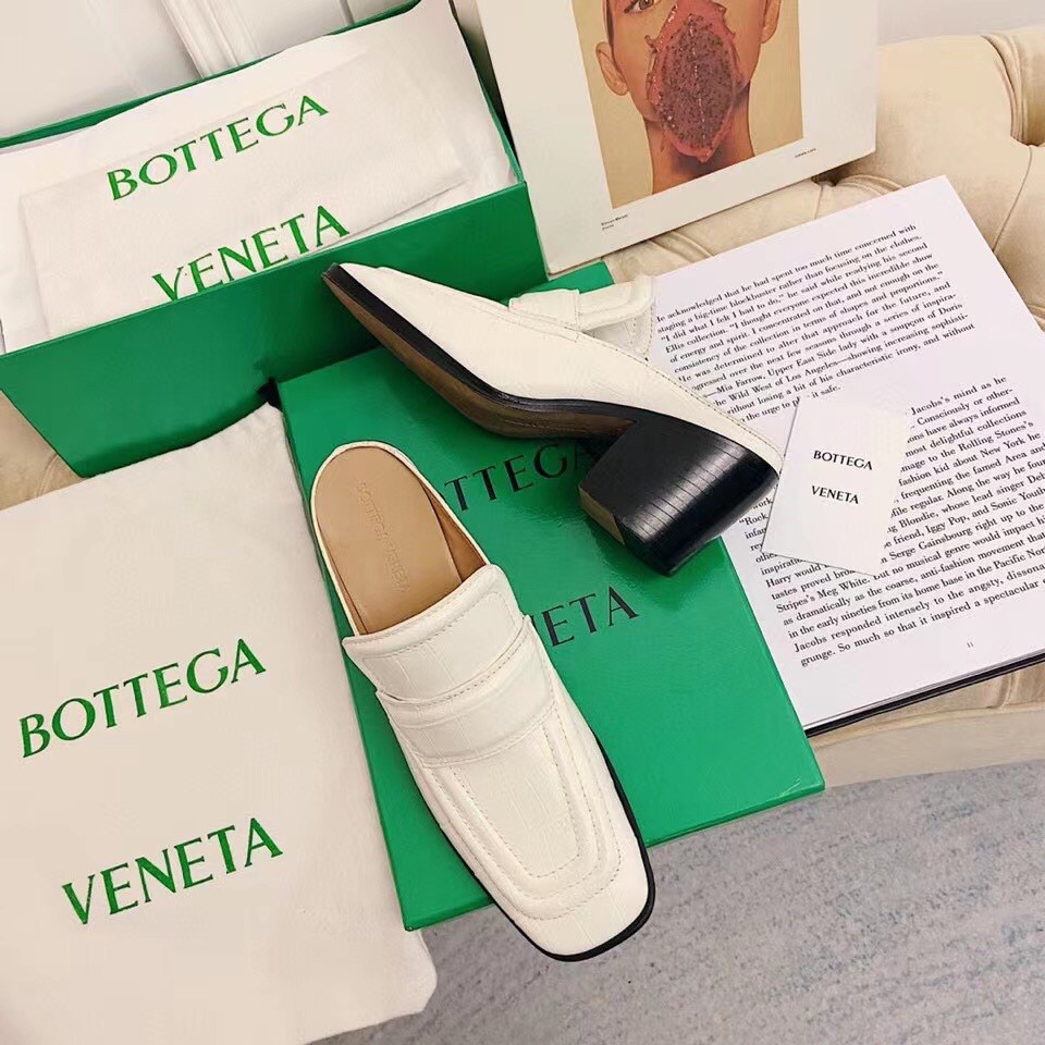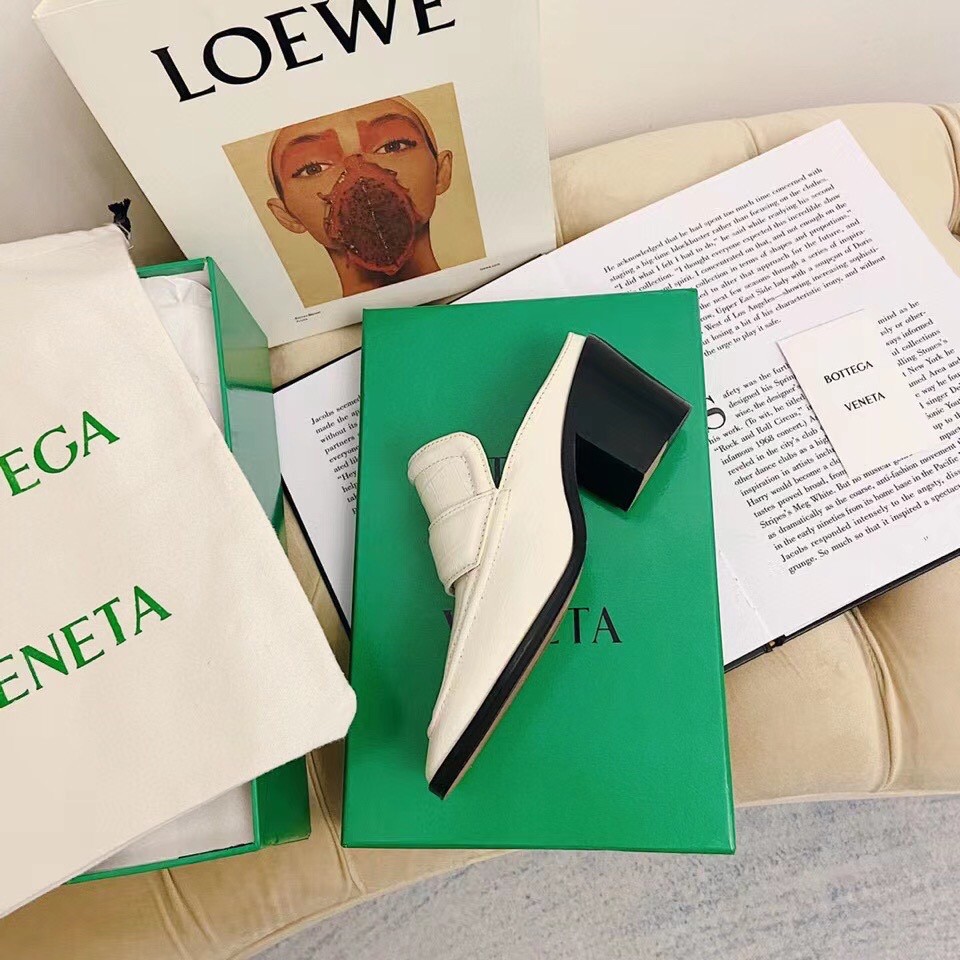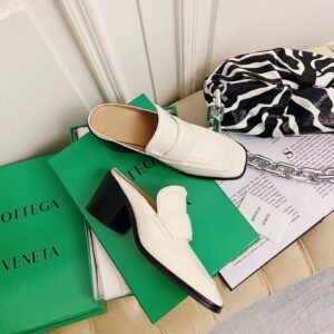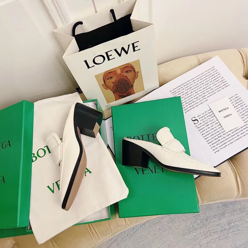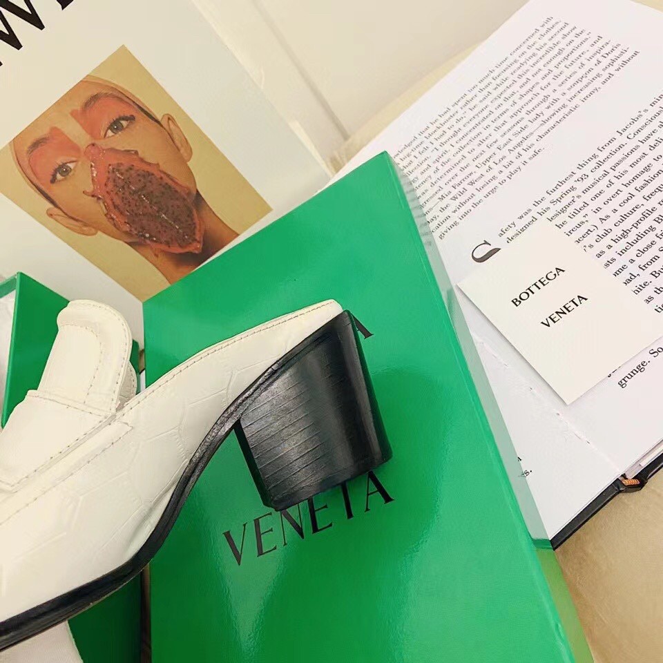 Bottega Veneta presents its take on one of the season’s key shoe silhouettes: loafer-inspired mules. In calfskin leather embossed with a crocodile effect, this pair features high vamps with raised detailing in the label’s signature triangular lines.