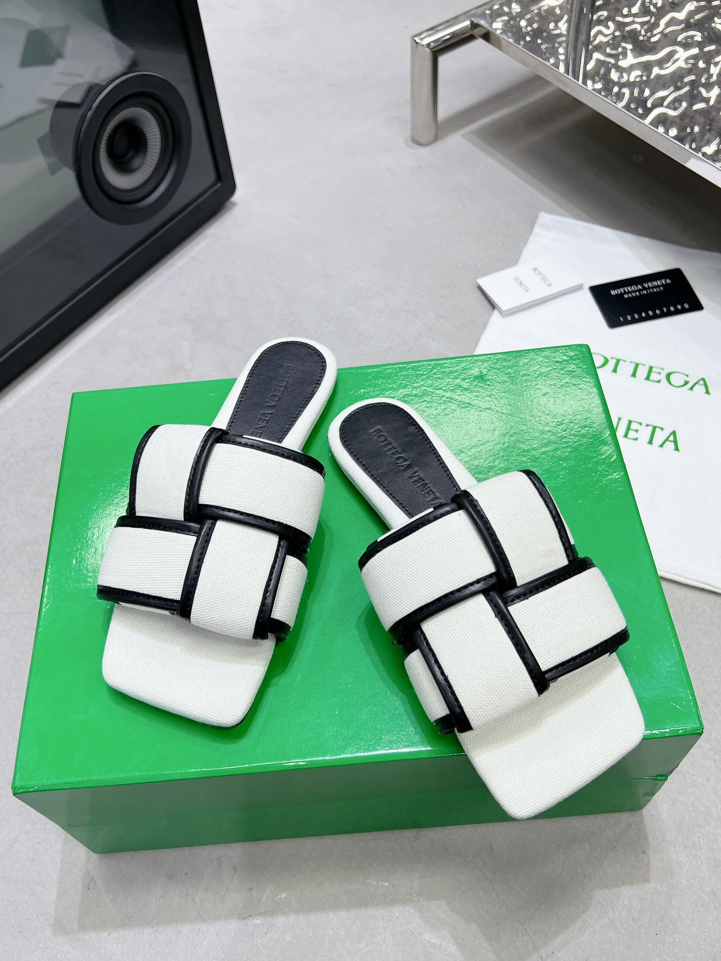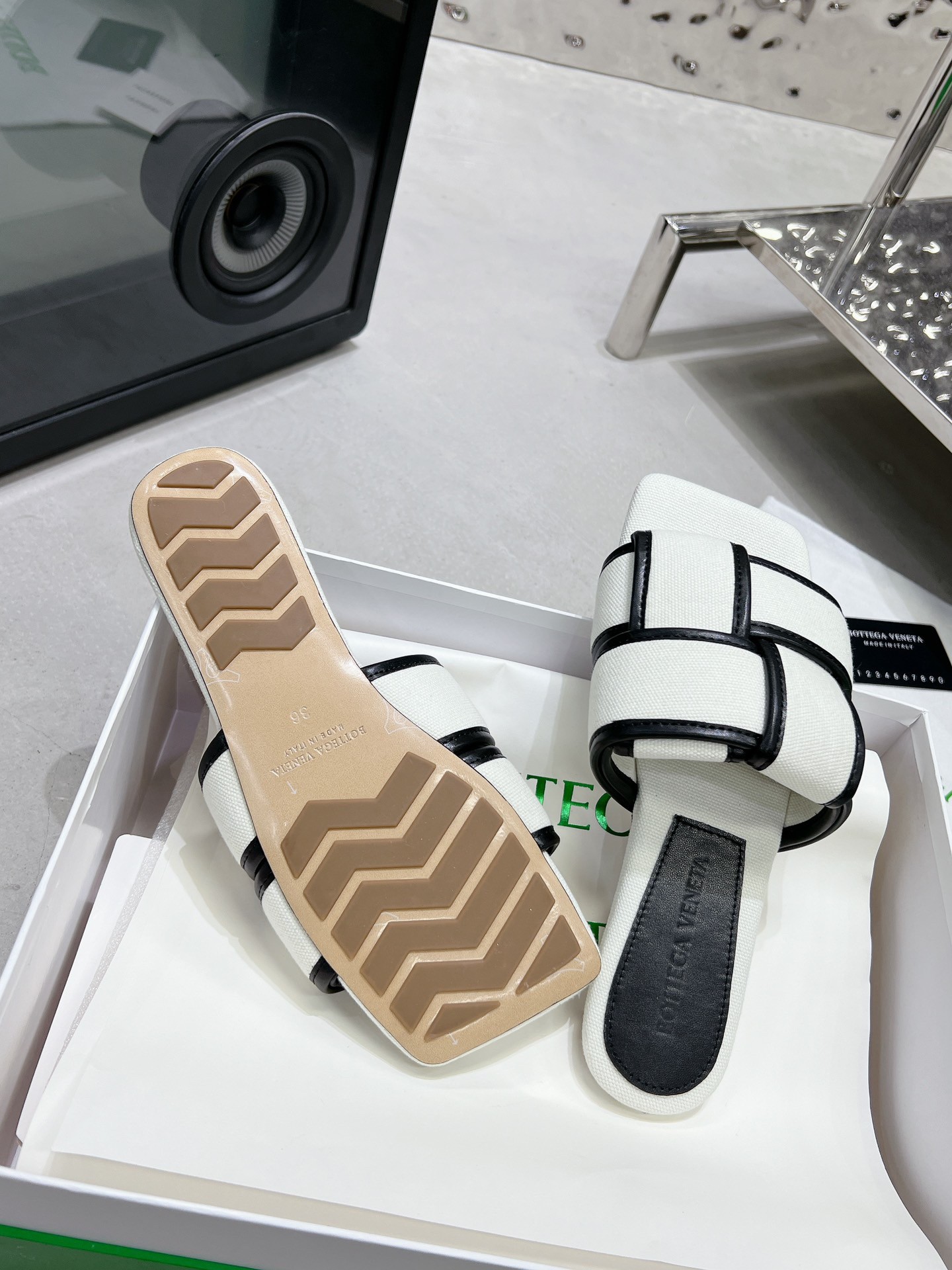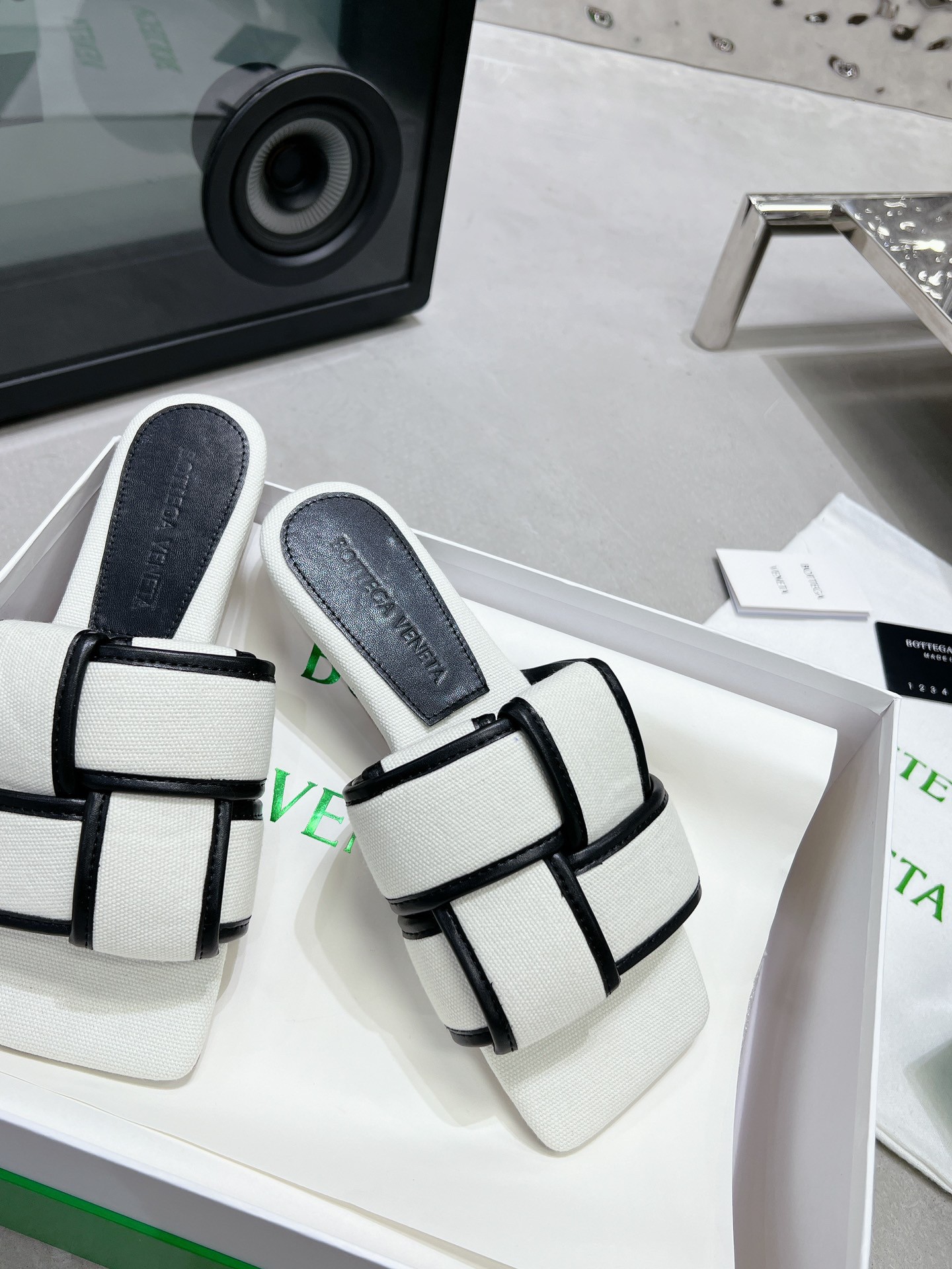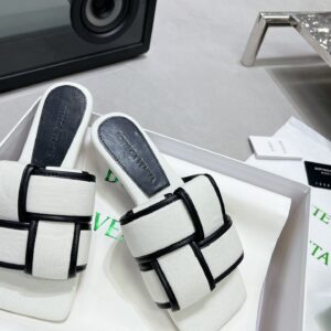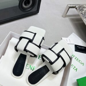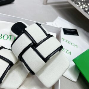 Bottega Veneta’s artful intreccio weaving technique was developed back in the 1960s to guarantee the longevity of leather goods. The Patch slides are made from canvas, arriving in a padded iteration with squared toes.