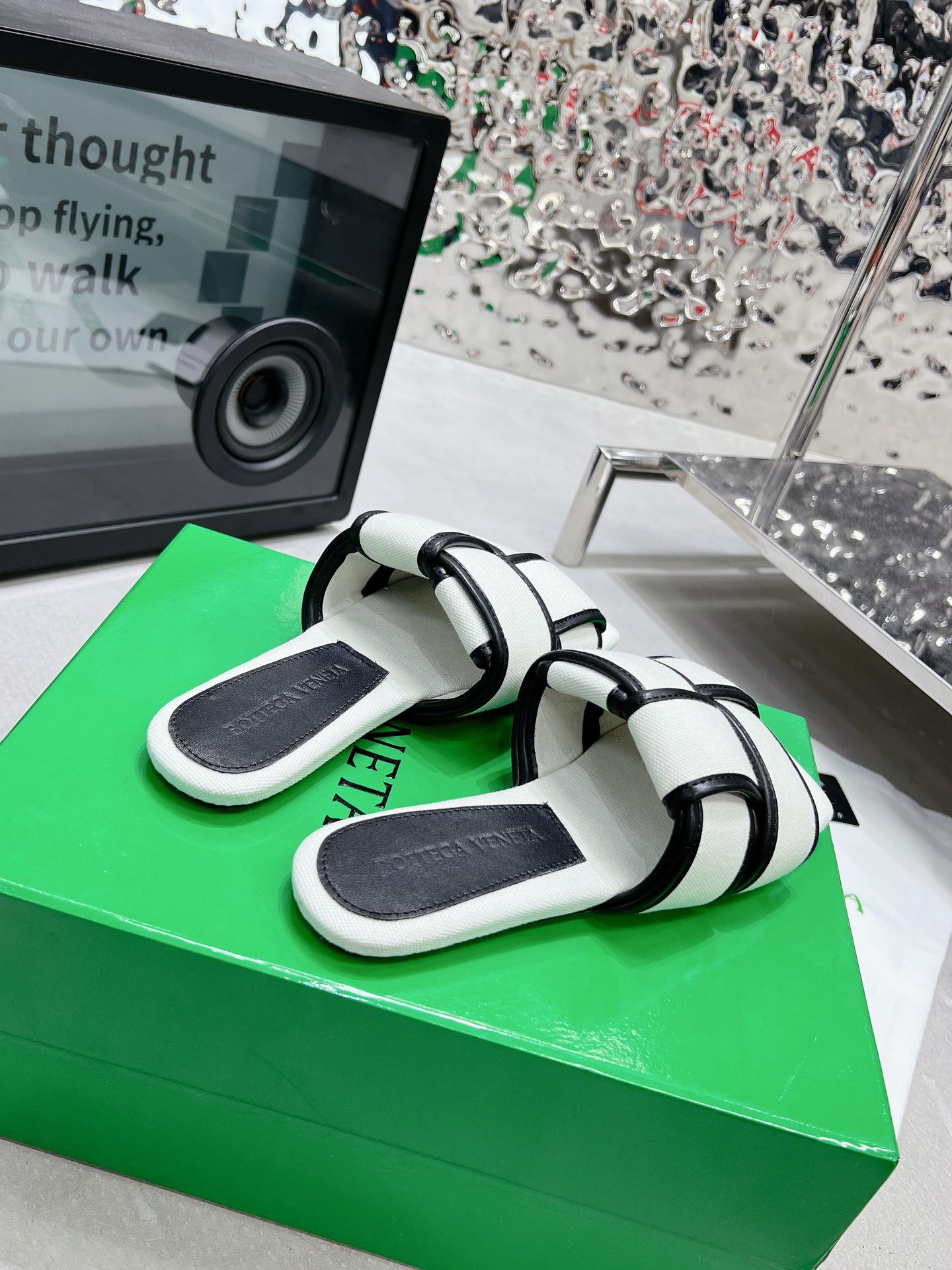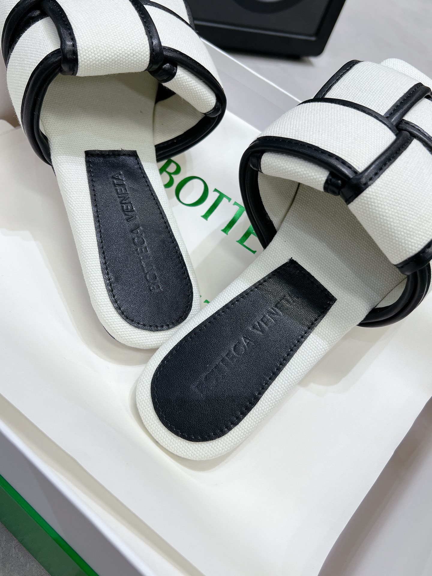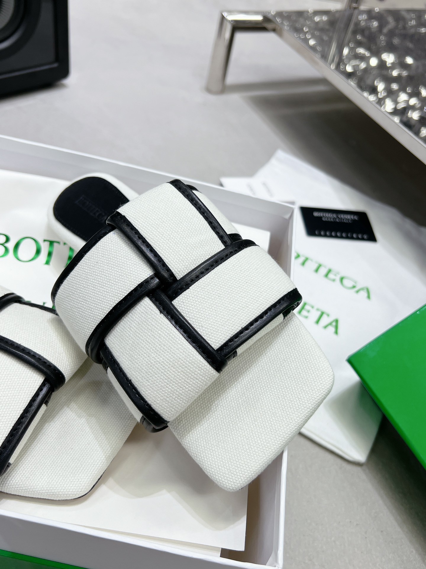 Bottega Veneta’s artful intreccio weaving technique was developed back in the 1960s to guarantee the longevity of leather goods. The Patch slides are made from canvas, arriving in a padded iteration with squared toes.