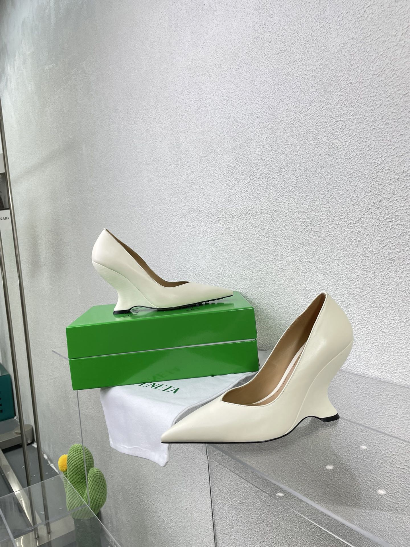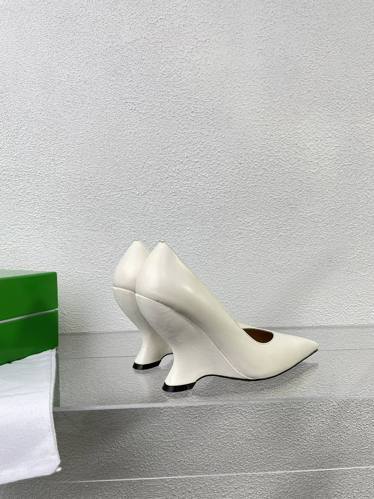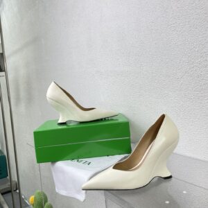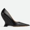 Bottega Veneta’s sculptural Punta pumps were elegantly modeled on the Fall ’22 runway in Milan, which happened to be the debut for Creative Director Matthieu Blazy. Made from smooth leather, they have pointy toes and waved wedge heels. Slip yours on with everything from tailored pants to cropped jeans.