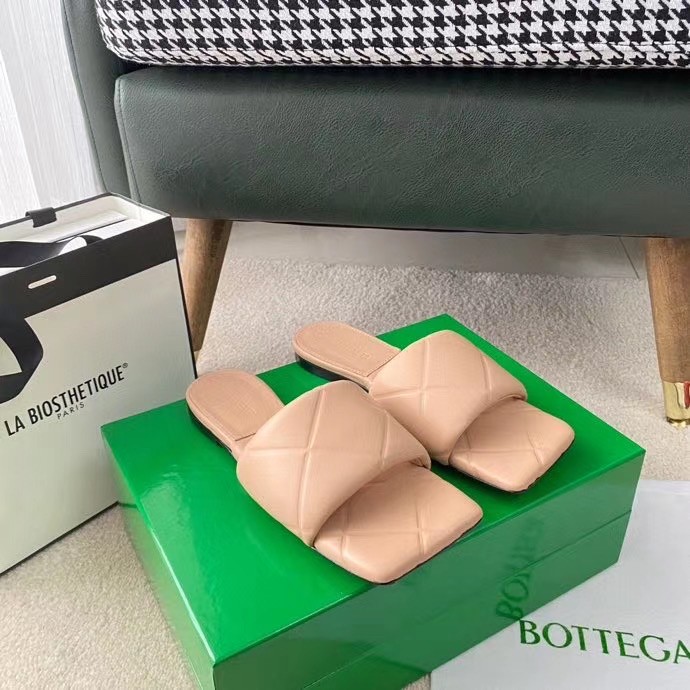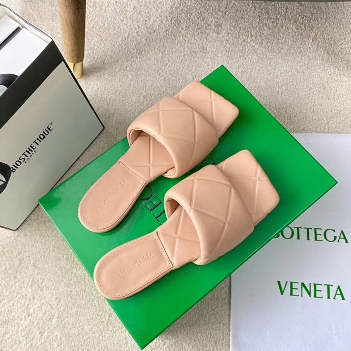 Bottega Veneta Rubber Lido Slides In Peachy Lambskin