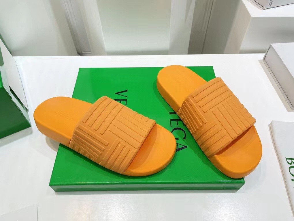 Bottega Veneta Slider Sildes In Tangerine Rubber
