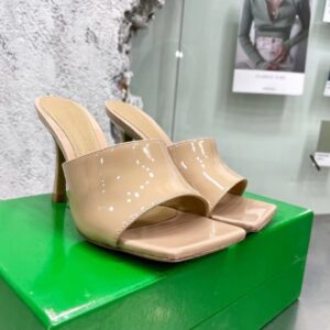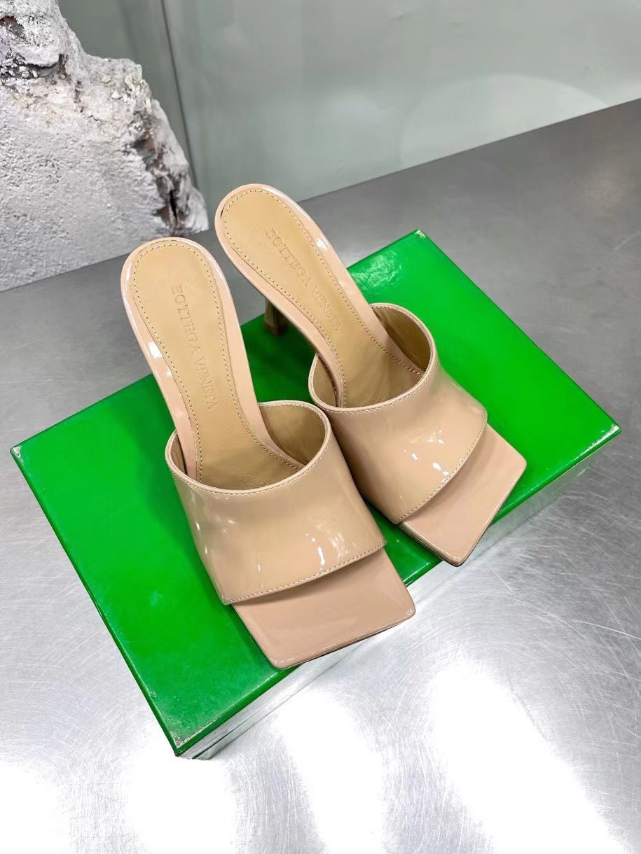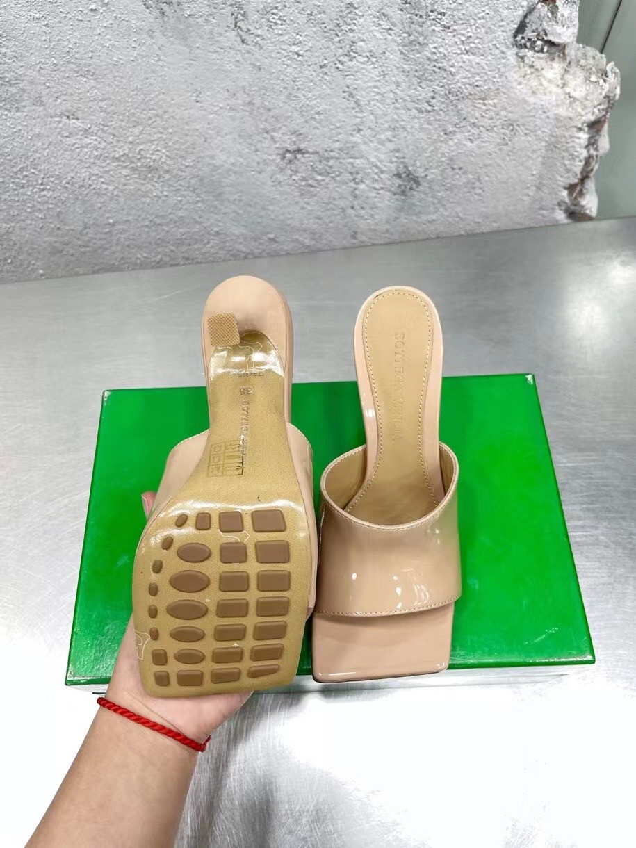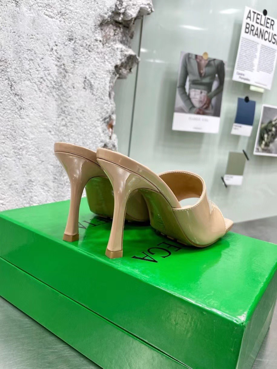 Bottega Veneta Stretch Mules 90mm In Beige Patent Leather