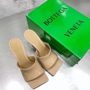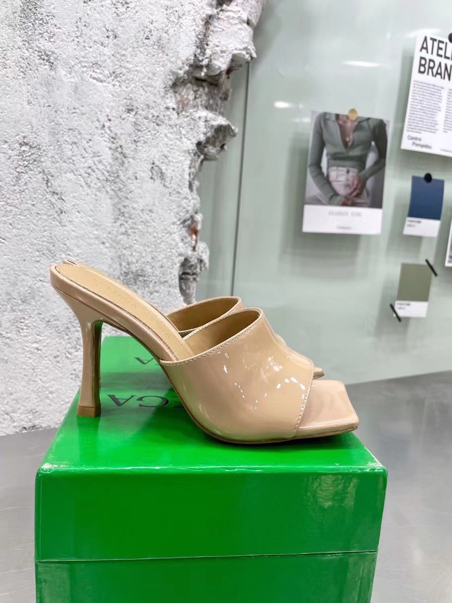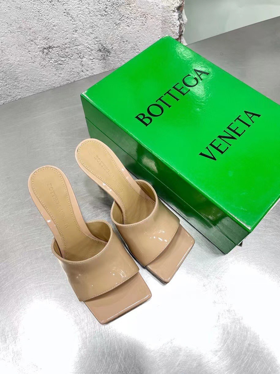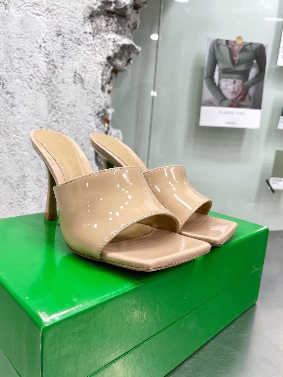 Bottega Veneta Stretch Mules 90mm In Beige Patent Leather